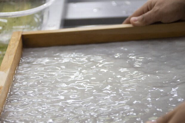 館内では職人による「流しすき」の実演を見学できます。また、開館日は毎日開催される紙すき体験のほか、不定期ではありますが和紙でのアクセサリー作りや和紙を染めるワークショップなど、親子で楽しめる体験が充実。子どもたちの自由研究や思い出づくりにもぴったりです。