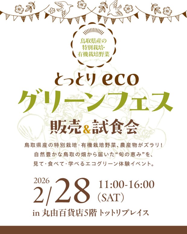 エコグリーン野菜を使ったカレーの販売や、倉吉北高等学校の先生による料理教室、有機栽培に従事する企業・農家さんによる試食・販売会も実施します!