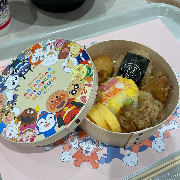 いなり寿司にカレーパンマンが焼印されていたり、海苔にアンパンマンが描かれていたりと、見ていても楽しい〜💛曲げわっぱは持ち帰って娘のおままごとに使います☺️