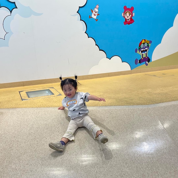 斜面を滑り台にして何度も滑って遊んでいました❗️室内ですが、思いっきり身体を使って遊べるスペースがあるのはありがたいですね〜