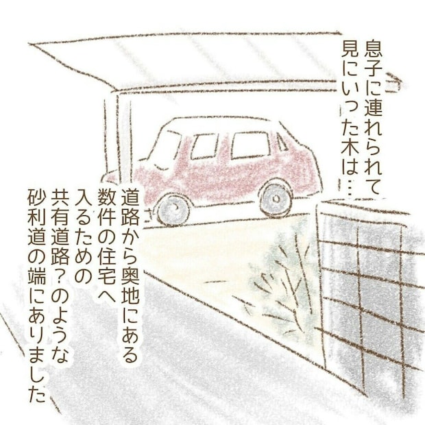 学校で「誰かが枝を折った」と問題になっている木を確認しに行った息子と父。実際に見てみると、想像とはだいぶ違う枯れ木でした。現場を確認するのは大切ですね。