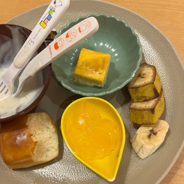 たまに、お宿の朝食って定食スタイルなどもありますが子連れだと色んな物が食べれるビュッフェが有難い!