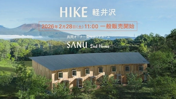 シェア別荘サービス「SANU 2nd Home」を展開する、東京都目黒区の「SANU」は、2月28日(土)11:00より、共同所有型セカンドホーム「HIKE 軽井沢」の販売を開始する。「HIKE(ハイク) 軽井沢」は、共同所有型セカンドホーム「SANU 2nd Home Co-Owners」の新プロジェクトになる。