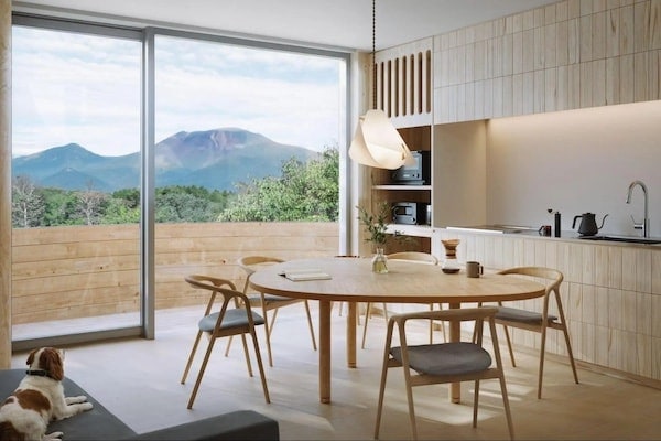 「HIKE 軽井沢」は、建築家・加藤匡毅氏が率いる「Puddle」が設計した新建築モデル「HIKE」を、軽井沢で初めて展開するもの。全室から浅間山を望む広々とした空間で、家族が“暮らすように過ごす”滞在体験を実現する。