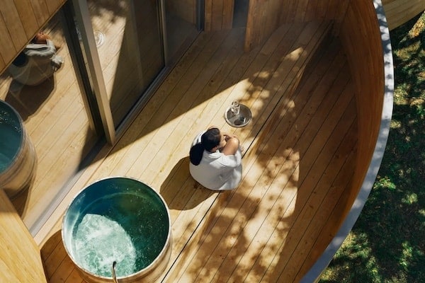 また、一部客室にはプライベートサウナを備え、愛犬との滞在にも対応。自然とともに過ごす時間を、日々の延長として重ねていける住まいを目指した。