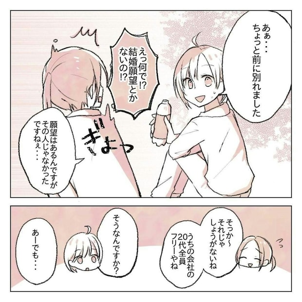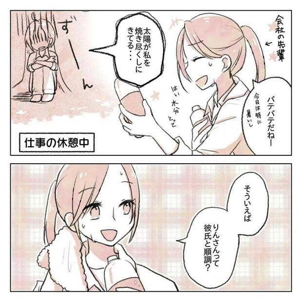 ある日の仕事の休憩中、りんさんと一緒にいた先輩が彼氏について聞いてきました。