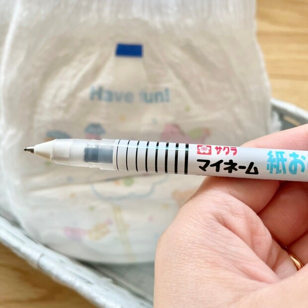 ハンコを検討していましたが、インク補充や手が汚れるなど…色々考えオムツには手書きに着地。