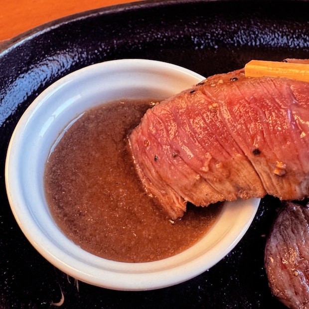 今回は料理長イチオシの筑穂牛赤身ステーキをライスセットでいただきます♪