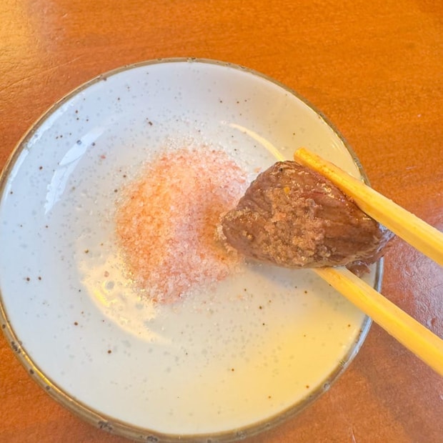 どうしても、岩塩でも食べてみたくてスタッフさんにお願いして持ってきていただきました。