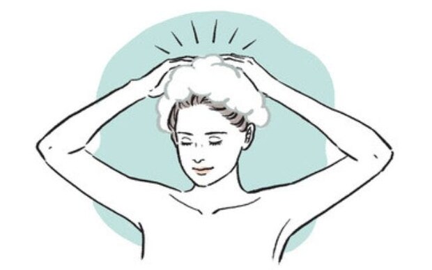 (1)ぬるま湯で予洗いをした後に、ヘアソープ バランスを手にとり、軽く泡立ててから頭にのせ、空気を含ませるように泡立てながら厚みのあるもっちりした泡をつくる。