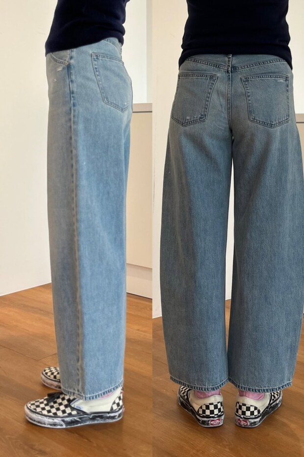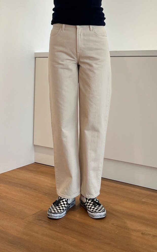 こちらのデニムの素材は、リヨセル混。見た目以上に軽く、かつ柔らかいのではき心地は快適そのもの。薄手なので真夏も活躍しそうですよ。それにしても「バギーカーブシーンズ」、シルエットもはき心地も最高すぎてバズってるのも納得でした!