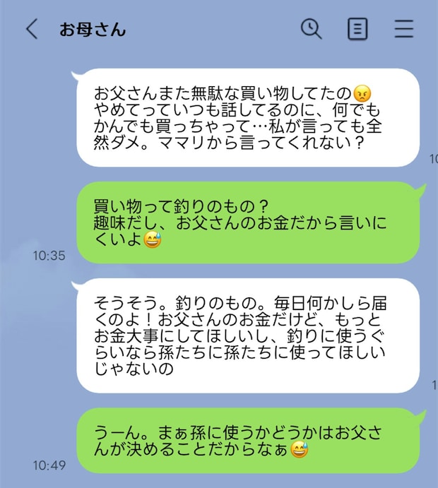 小学生ぐらいから、母がそんな調子だったので、父の愚痴言うなって伝えるようにしましたが、私の産後、私を愚痴仲間にしたいらしく、私の主人の粗探しをしたり、父の愚痴を再開するようになりました。