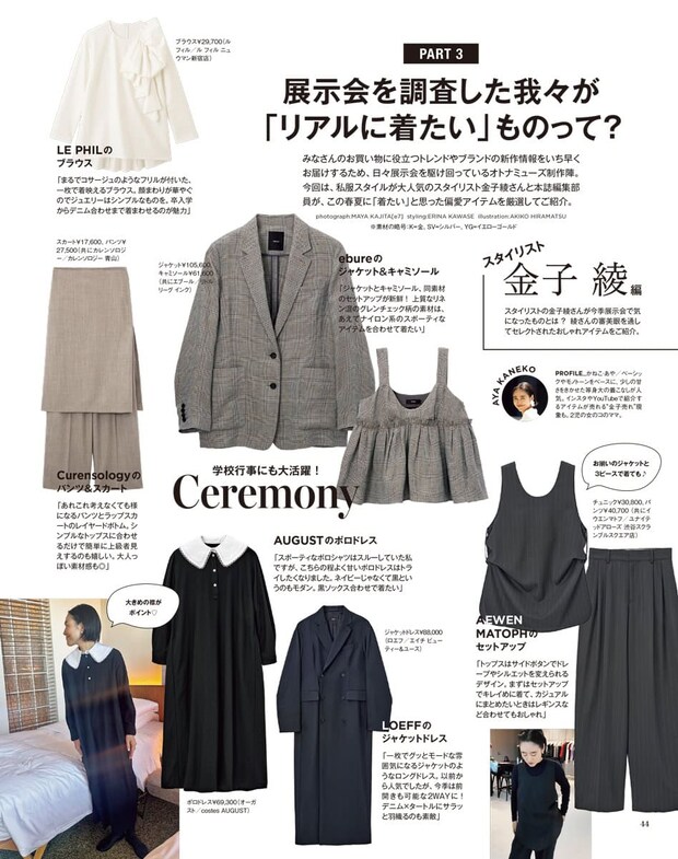 そんなふうに漠然と「コレが着たい」と感じているものを形にしたのがこちら。まず、大人気スタイリスト金子綾さんにこの春着たいと思ったものをガッツリおしえていただきました。編集部員たちもあちこちからかき集めてきた情報をピーチクパーチク会議で話しております。