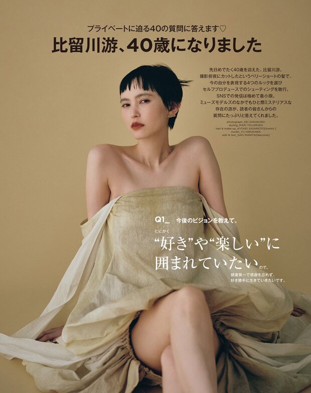 そして、信じがたい大ニュース。オトナミューズモデルとして長く活躍してくださっている比留川游さんが、2026年の2月でなんと40代に突入したのです!