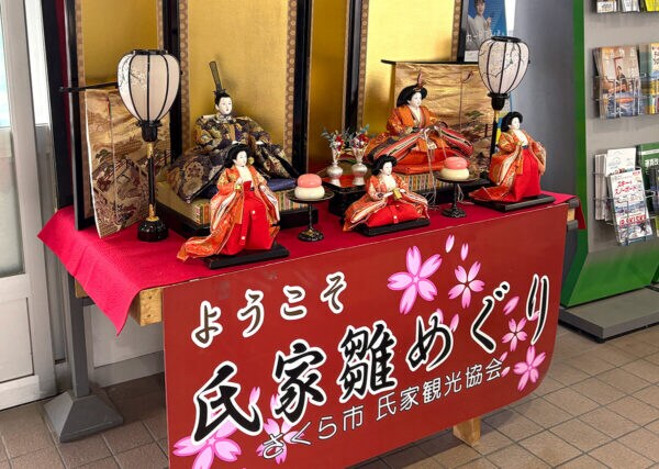JR氏家駅前の駅前情報館には巨大なジャンボひな壇がお目見え!