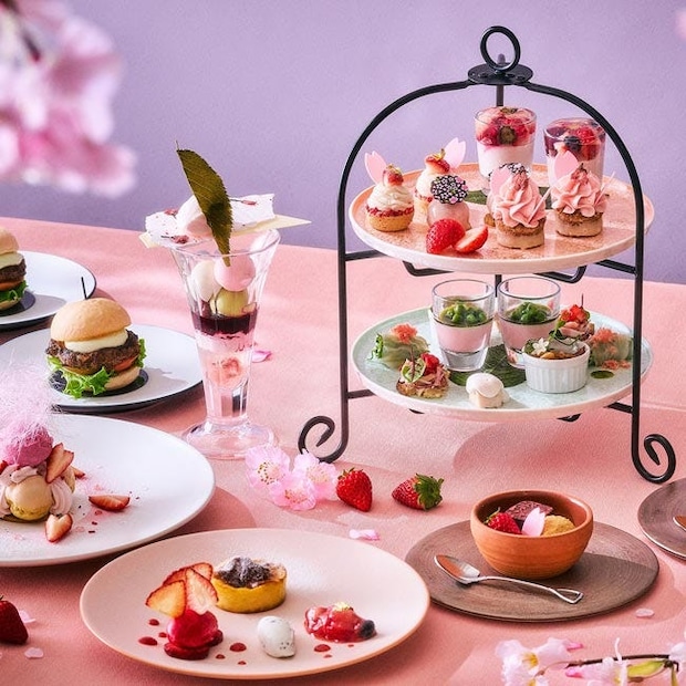 いちごと桜が主役の春のアフタヌーンティーで、ホテルならではのお花見を体験
