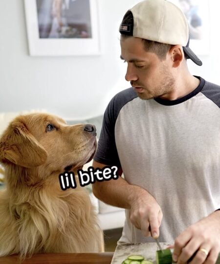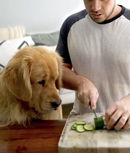 お料理している飼い主さんの手元が