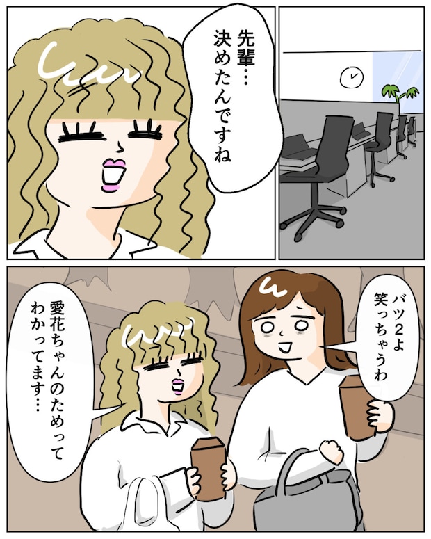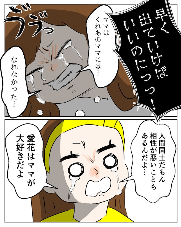 悲しむ愛花に「これは大人同士の問題だから。2人のせいじゃないのよ。」そう伝えましたがきっと、愛花の心は晴れることはないと思います。くれあがこうなってしまったのは自分にも原因があるとずっと思っていました。前のように仲良しに戻りたいとそう願っていました。