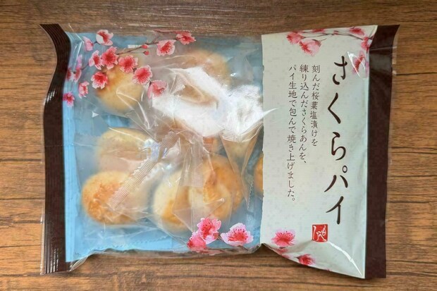 味は、ほんのりとした桜の風味が感じられ、しっとりした質感のパイ生地と白餡の相性がバツグンです。