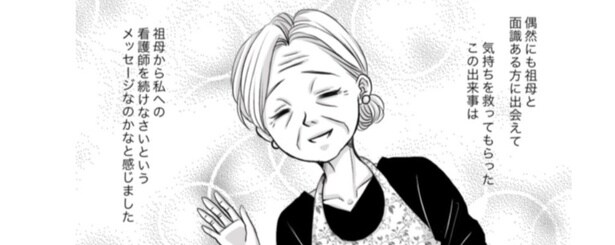 2025年10月1日 震災で祖母を亡くし、仕事ができなくなった看護師。偶然の出会いが彼女の心を救う/ナース漫画 Walkerplus 看護師・看護学生向けの総合WEBメディア「ナース専科」では、看護師の実話エピソードを基にした漫画を配信中。医療現場の苦労や喜びをリアルに描いた『ナース漫画』の中から、特に反響が大きかったものを厳選してお届けします。 →『ナース漫画』を最初から読む 【ナース漫画】「エンゼルケアができなくなった私に…」01 / 画像提供:ナース専科「エンゼルケアができなくなった私に…」02 / 画像提供:ナース専科「エンゼルケアができなくなった私に…」03 / 画像提供:ナース専科「エンゼルケアができなくなった私に…」04 / 画像提供:ナース専科「エンゼルケアができなくなった私に…」05 / 画像提供:ナース専科「エンゼルケアができなくなった私に…」06 / 画像提供:ナース専科 →【漫画】この漫画をはじめから読む →【漫画】『怖いトモダチ』を読む →【漫画】『恐らく誰の人生にも影響を及ぼすことはない僕のサラリーマン生活』を読む 著:アヤ/『ナース漫画』