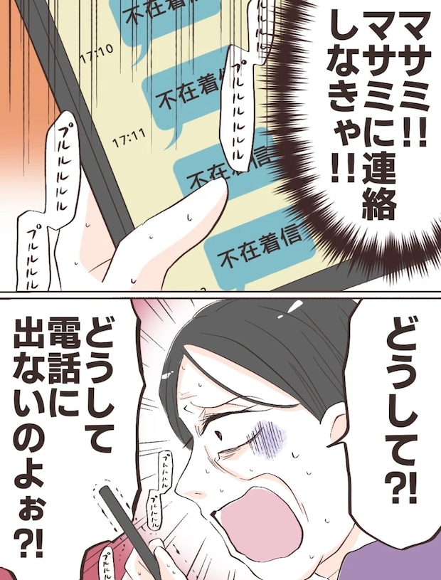 マサミならこの状況を何とかしてくれるはず、そう思った母は、私に何度も何度も電話をかけてきました。けれど、すでに家族と決別した私は、その電話に出ることはありませんでした。「どうして!?どうして電話に出ないのよぉ!?」母の悲痛な叫びはスマホの前で虚しく響くだけで、誰にも届くことなく消えていきました。