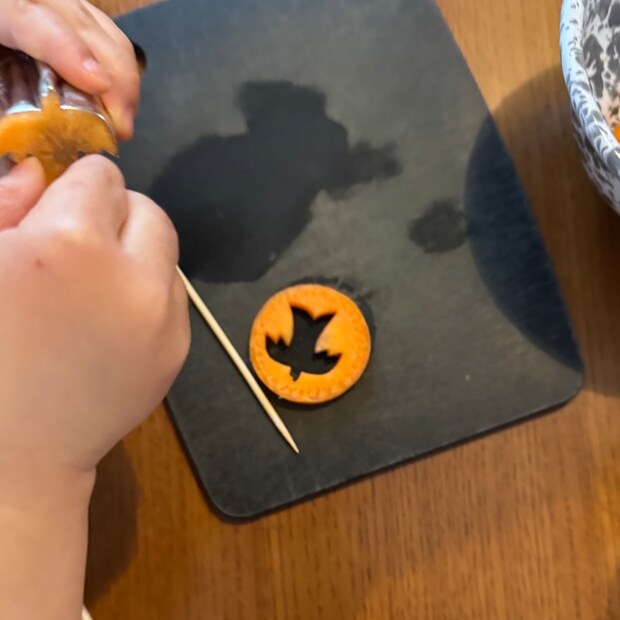普段から型抜きでパンを食べているからか、型抜きを見た途端に「やるー!」とルンルン。