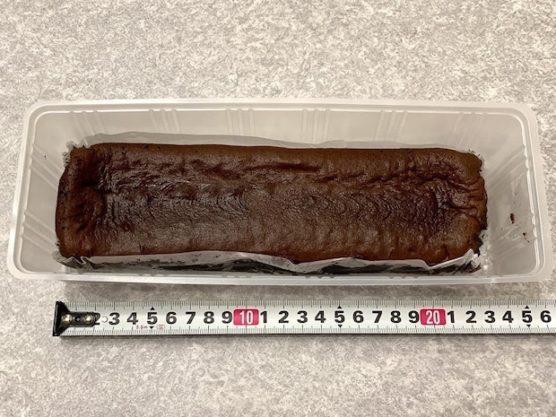 測ってみると、長さ約23cm、重さ約306gというずっしりとした長方形サイズで、家族や友人と切り分けてシェアするのにぴったりのボリューム感です。
