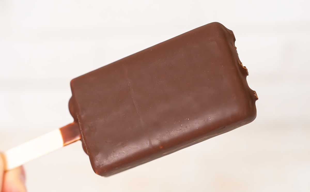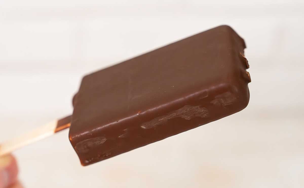 チョコレートコーチング仕立てのアイスなので、パッと見た感じでは、ただのチョコレートアイスのように見えますね。