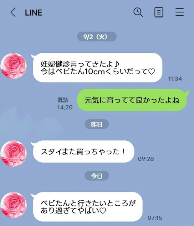 まだまだ産まれるの先なのに、産まれたらどんな顔してるんだろうとか性格が…とか産まれたらどこどこ行きたいとか…そんな話は家族感でしてくれと思うような内容を毎日LINEしてきます。