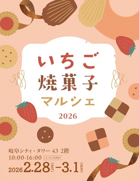 2月28日(土)・3月1日(日)、岐阜シティ・タワー43 2階特設会場にて「いちご焼菓子マルシェ2026」が開催される。