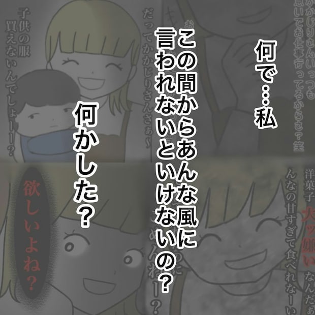 かかじりさんが出会った渡部さんもその一人。最初は気さくに話してくれたものの、次第に不快な言動が増え、嫌がらせを受けることに。思い切って気持ちを伝えたところ、周りのお母さんたちが助けてくれました。なんと彼女たちは、学生時代に渡部さんからいじめられた経験があったのです。大人になり、親になっても「いじめる」という行為をやめられない人がいること驚いたかかじりさん。その後渡部さんは転園し、どうしているかわかりませんが、また新しいターゲットを見つけているかもしれません。