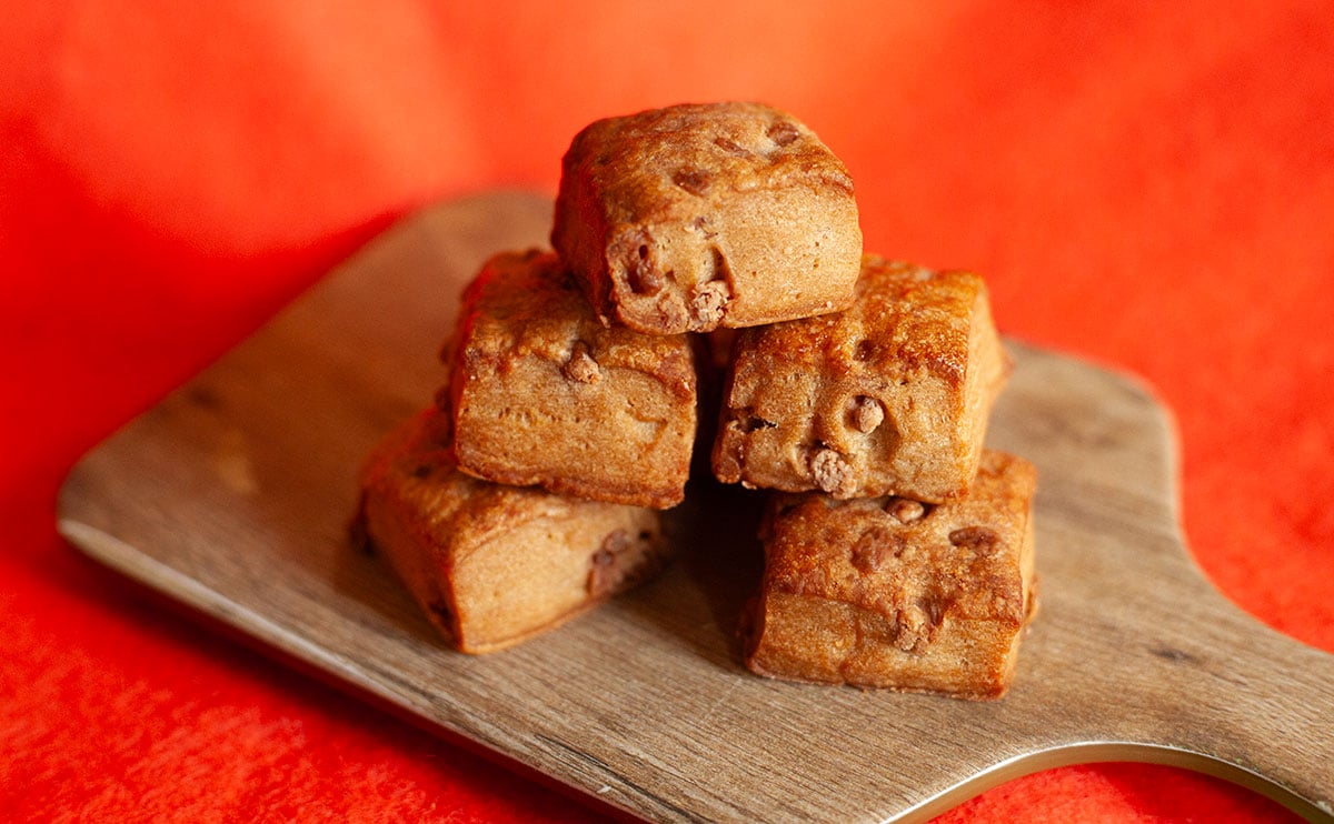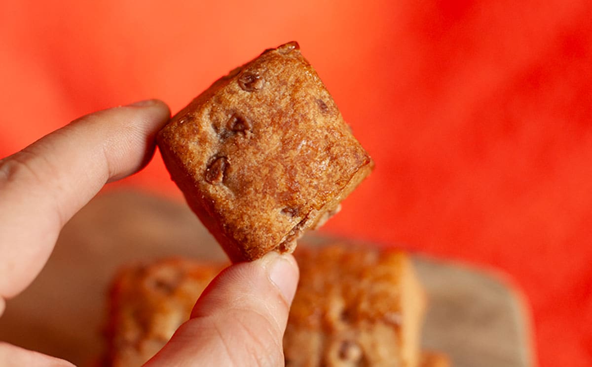一つひとつのサイズは、かなり小さめ。いわゆる一口サイズといったところです。ちなみに表面がボコボコしているのは、そこにチョコチップがあるから。