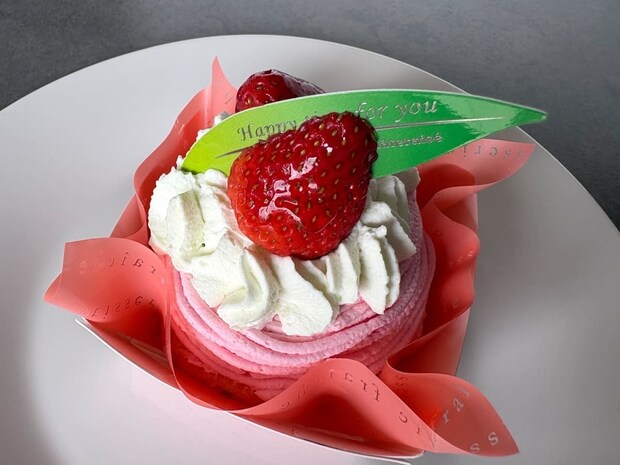 トッピングには、フレッシュな苺と、ひな祭りにぴったりの可愛らしい桃の花があり、お祝いムード満点です!