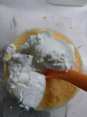 砂糖、卵黄、ヨーグルト、メレンゲなどを入れて混ぜていきます。