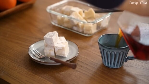 TastyTimeさんは、このソースを使ってSNSで話題の“りんごマシュマロ”作りにチャレンジ。アップルソースにお湯でふやかしたゼラチンとはちみつを加え、ふわふわになるまで泡立てます。バットなどに入れて冷蔵庫で冷やせば完成!りんごをピューレ状にする工程をカットできるので、もともと簡単なレシピをさらに時短できますよ。