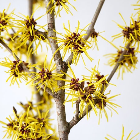 枝ものの流通時期12月〜2月の「花万作(ハナマンサク)」は、細く伸びた枝先に独特の形をした花を咲かせ、早春の枝ものとして古くから親しまれている。