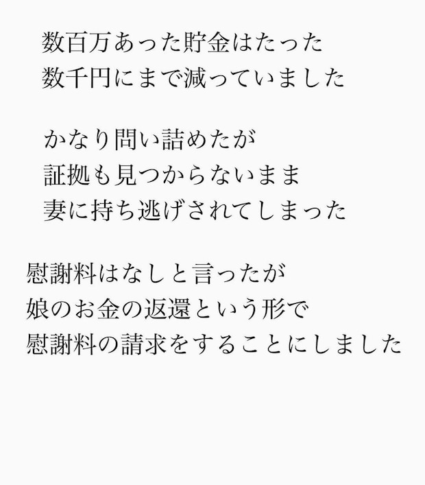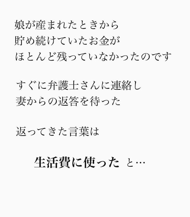 娘の将来のために貯蓄していたお金…。数百万円も消えていたことが発覚しました。結局、妻に持ち逃げされる結末となってしまいました…。
