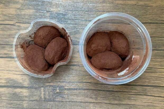 表面にはたっぷりのココアパウダーがまぶされ、国産もち粉を使用した「雪平生地」は、マシュマロのようにふんわり&もっちりとしたやわらかな食感。