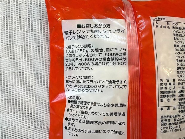 電子レンジかフライパンでの調理ですが、電子レンジ調理の場合、1kgの商品と180gでは作り方に違いがあるんです。