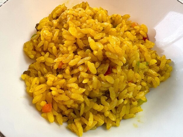 ピラフと同じく国産の米を使っていて、野菜はピーマン、玉ねぎ、にんじんが入っています。