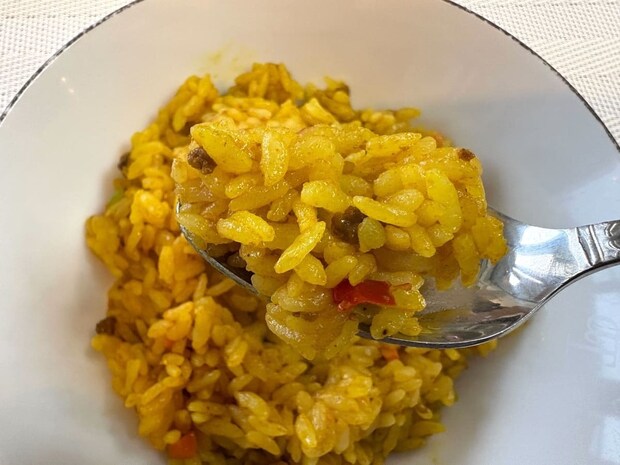 ピラフほどのパラパラ感はないものの、ベチャッとした水っぽさはなく、しっとりしつつもほどよい口当たり。