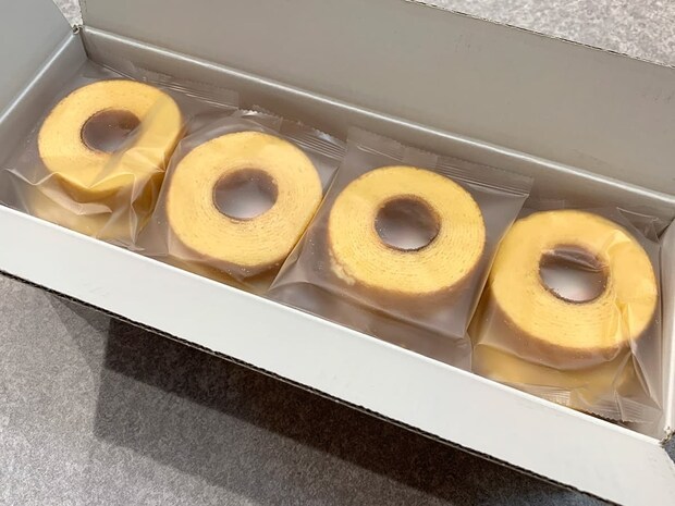 老舗「千年屋」が手がける本格バウムクーヘンは、その名の通りしっとりなめらかな食感が自慢です。