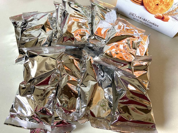 ハート型をした可愛らしいパルミエが84枚も入った大容量パックで、14袋の小袋に6枚ずつ個包装されています。