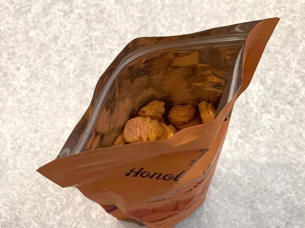 454gの大容量でジッパー付きなので、自分のペースで食べられるのが嬉しいポイント。パイナップルの形状で一口サイズ、ほんのりピンクがかったオレンジ色が南国気分を演出してくれます。