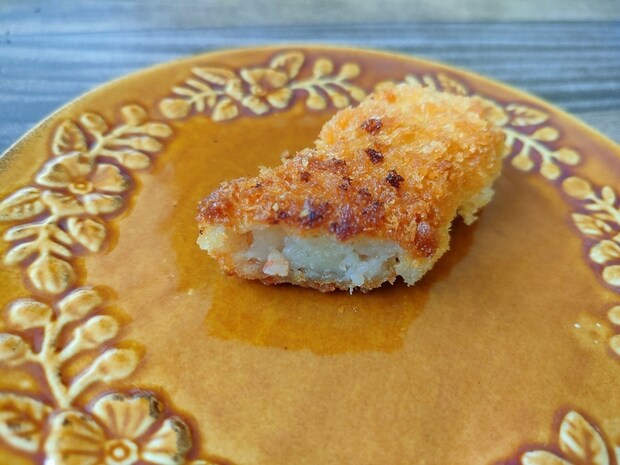 衣はサクサクとして美味しいものの、魚肉が使われているため、エビがゴロゴロ入っているような強いエビの風味は少なめです。しかし、その分クセがなく食べやすいのが特徴で、ソースやケチャップ、タルタルソースともよく合います。