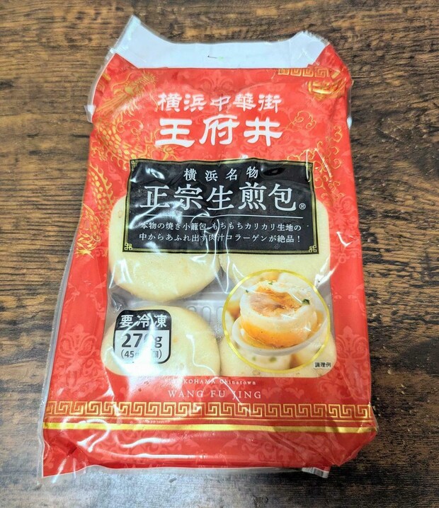 横浜中華街の大通りに店を構える小籠包専門店「王府井」の味を自宅で楽しめる「正宗生煎包」です。価格は6個入りで451円(税込)、1個あたり約75円と非常にリーズナブル。