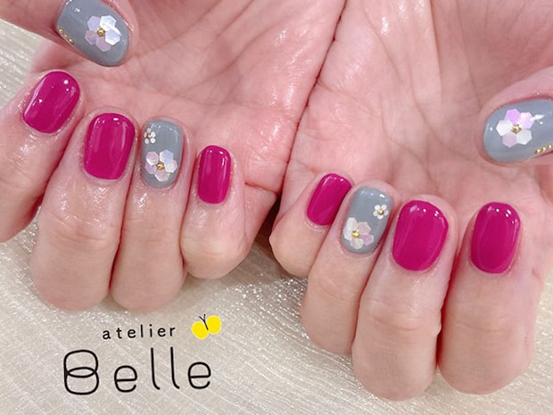 今回は、鮮やかなビビッドピンクのネイルカラーをメインに、グレーのネイルカラーをアクセントとして組み合わせたメリハリのある大人可愛いネイルデザインをご紹介いたします。