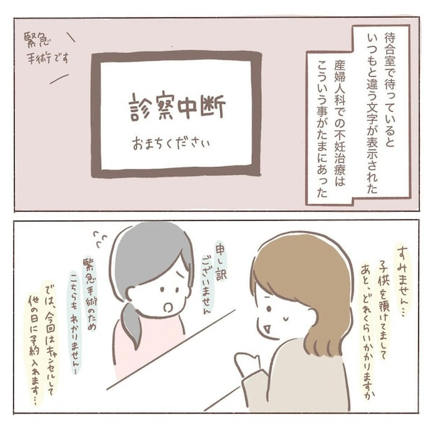 無事に娘を預けてひと安心したcoromoさんでしたが、病院に着くと緊急手術が入っており、診察は一時中断していました。