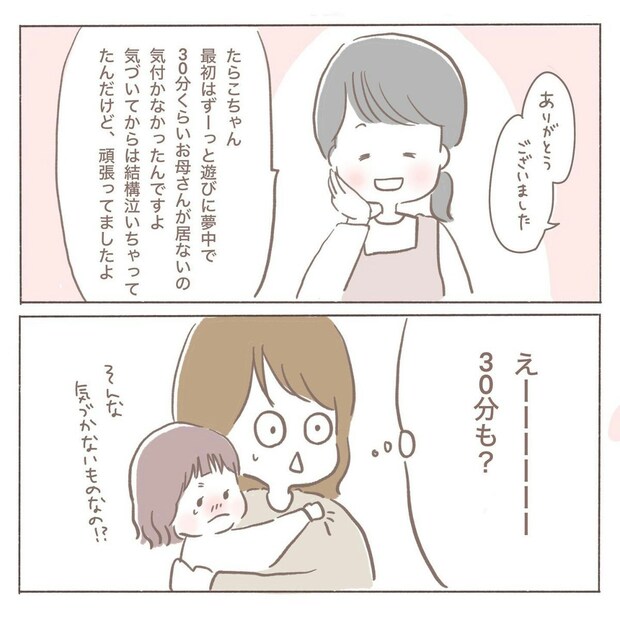 娘さんにとっても、ママと離れて一時預かりで過ごすのは初めての日でした。いつも一緒にいるからこそ、不安になってしまったのかもしれませんね。これからも不妊治療で病院に通う機会が続くなら、少しずつ一時預かりに慣れてもらえると、通院もしやすくなりそうです。