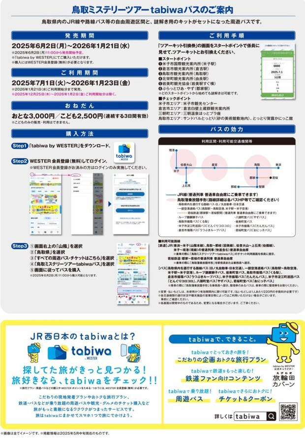 まずは、WEBで「鳥取ミステリーツアー tabiwaパス」を購入!